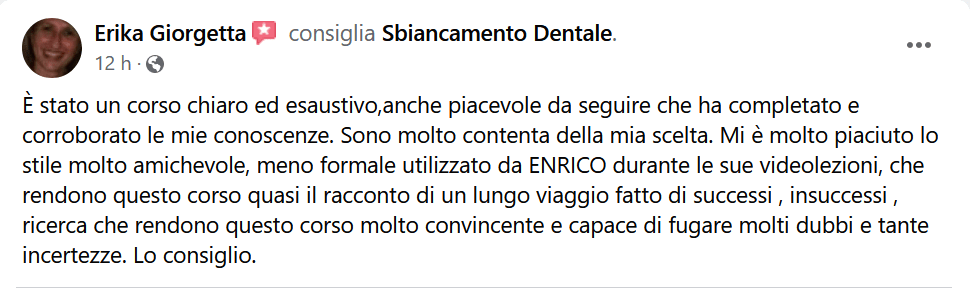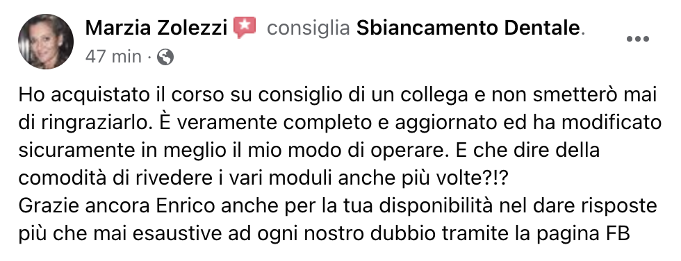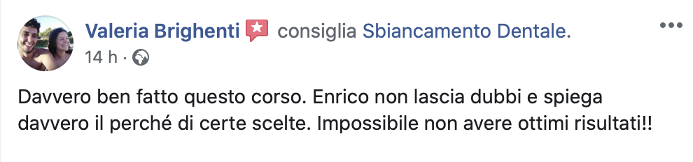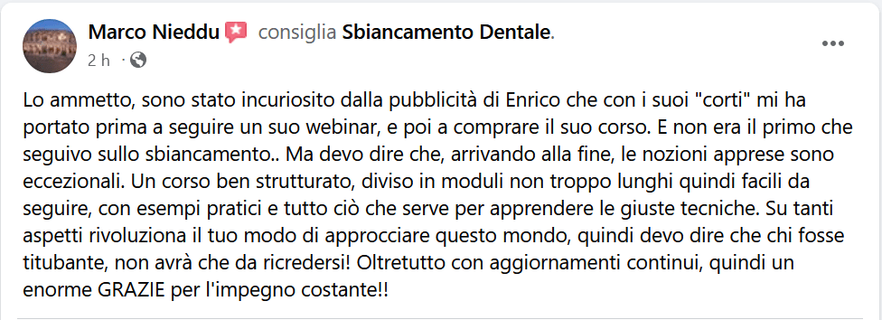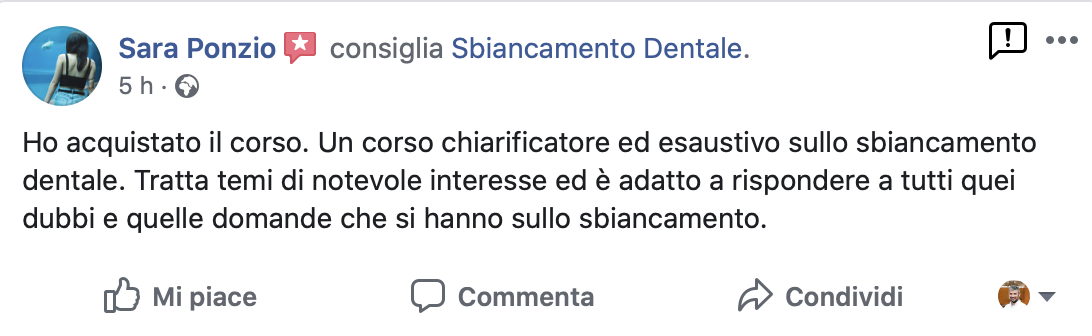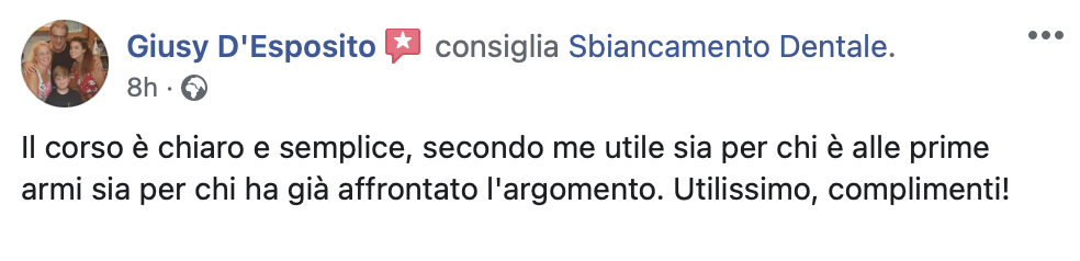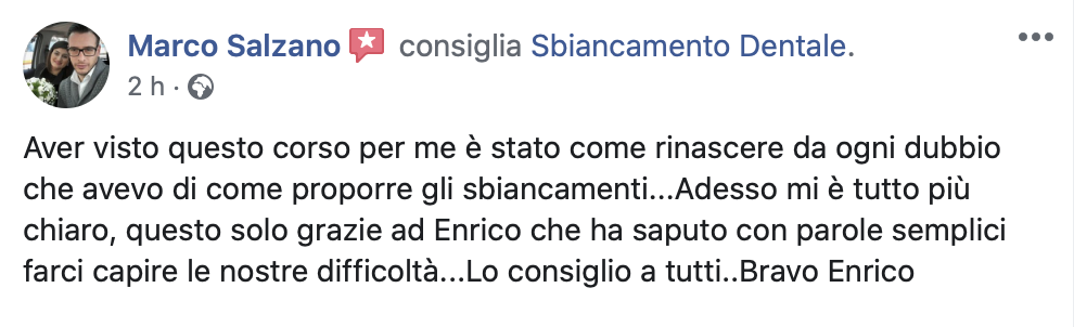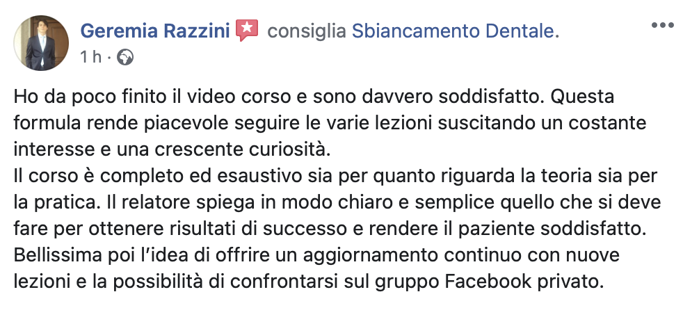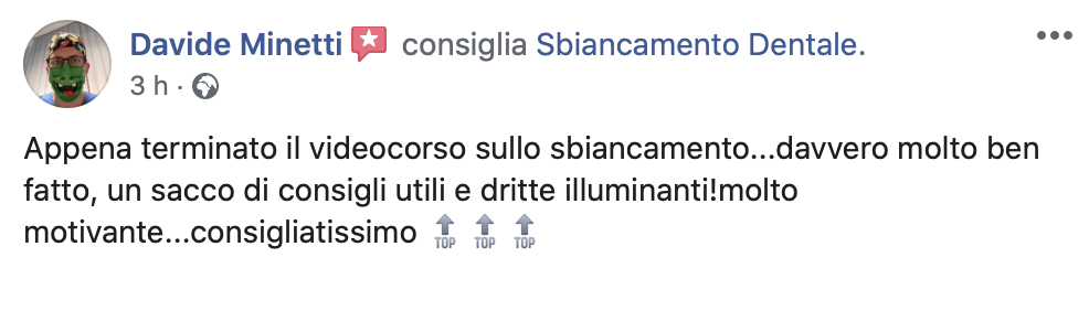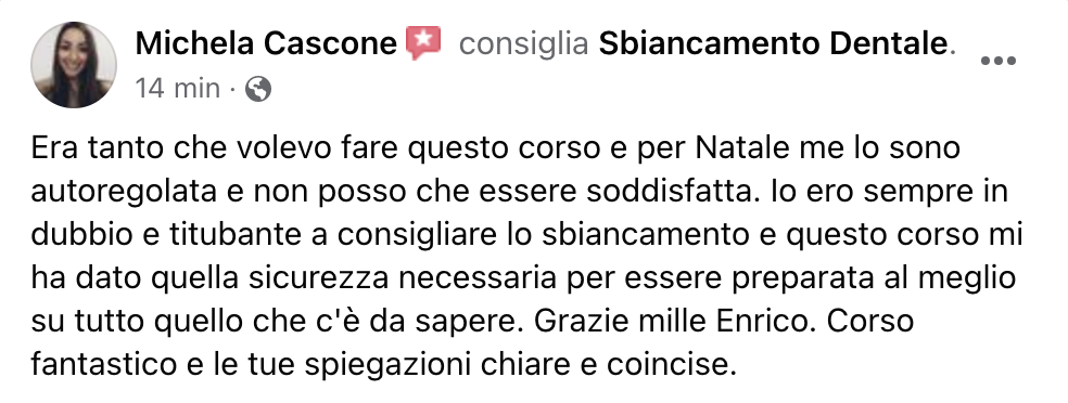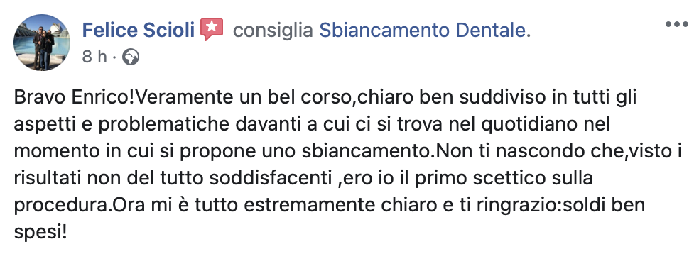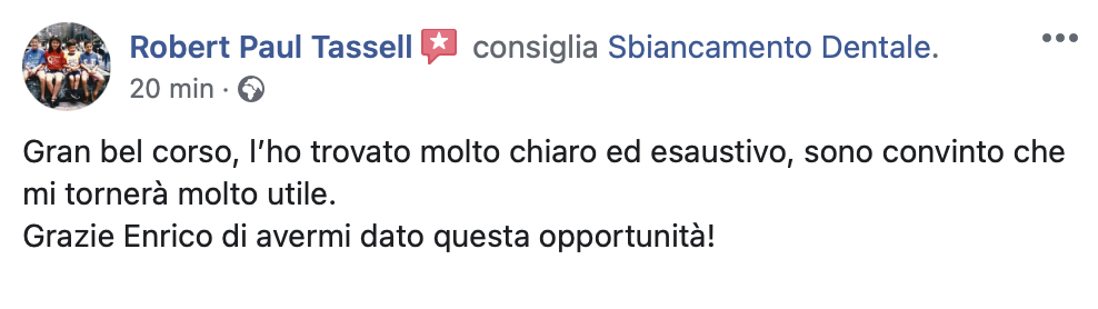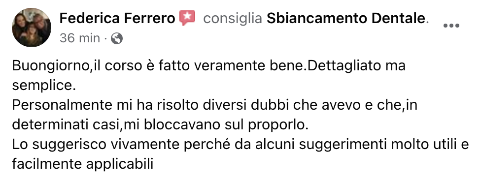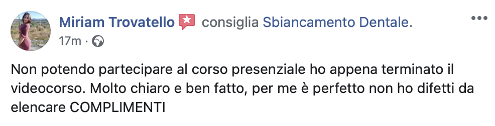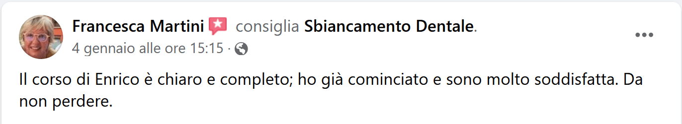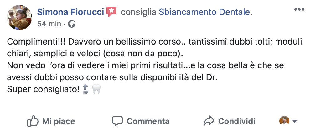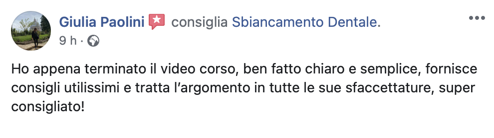 Ecco cosa dicono le persone di me e del mio videocorso online sullo sbiancamento dentale.