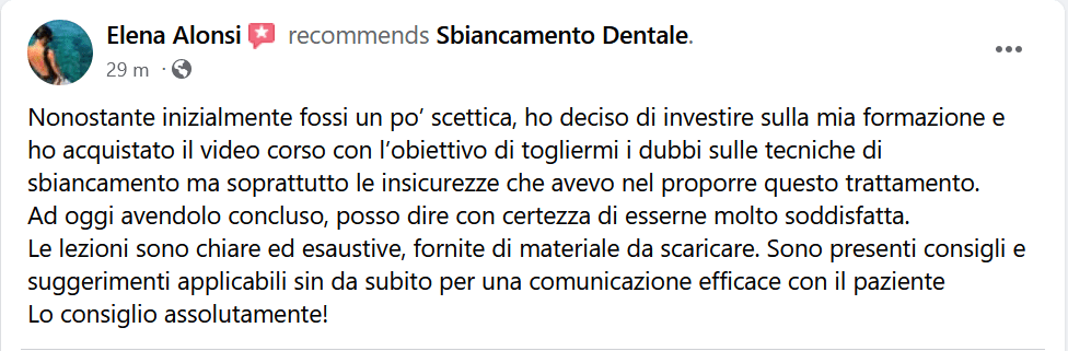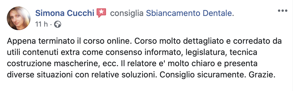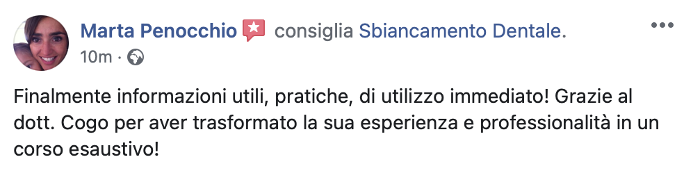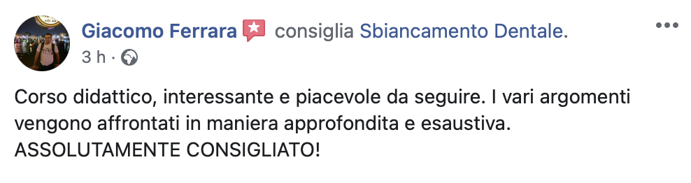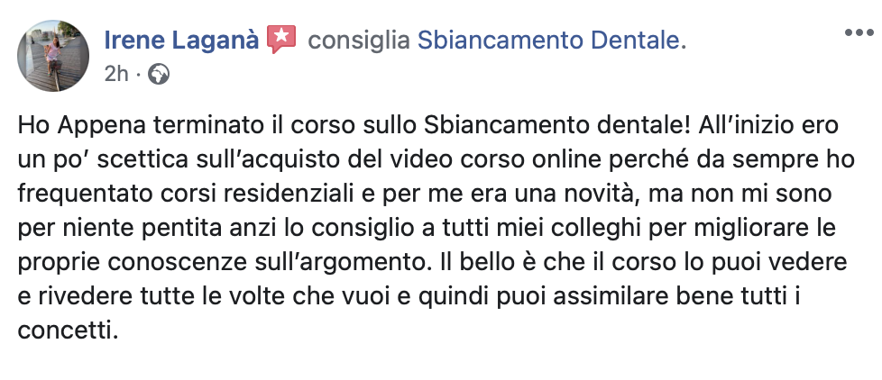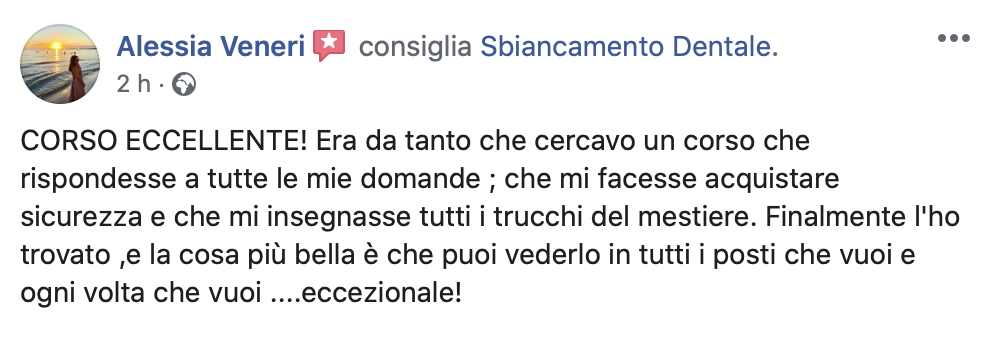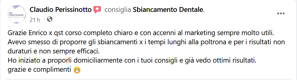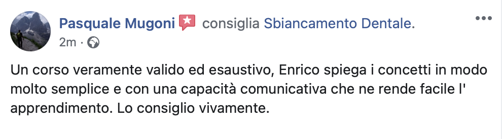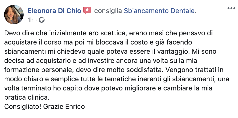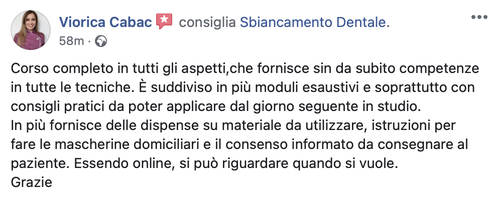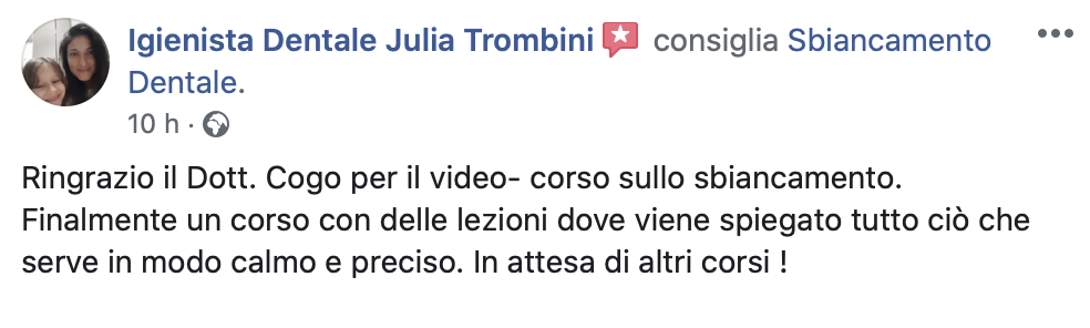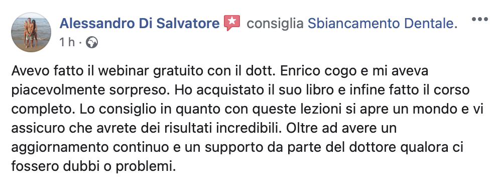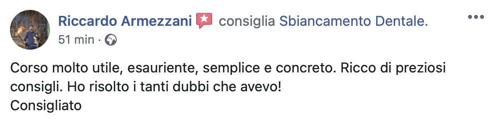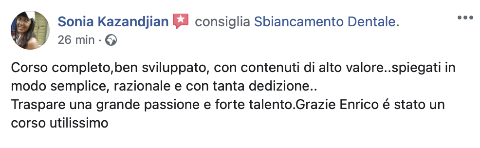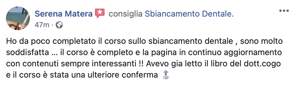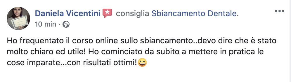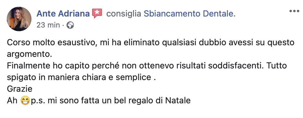 Ecco cosa dicono le persone di me e del mio videocorso online sullo sbiancamento dentale.