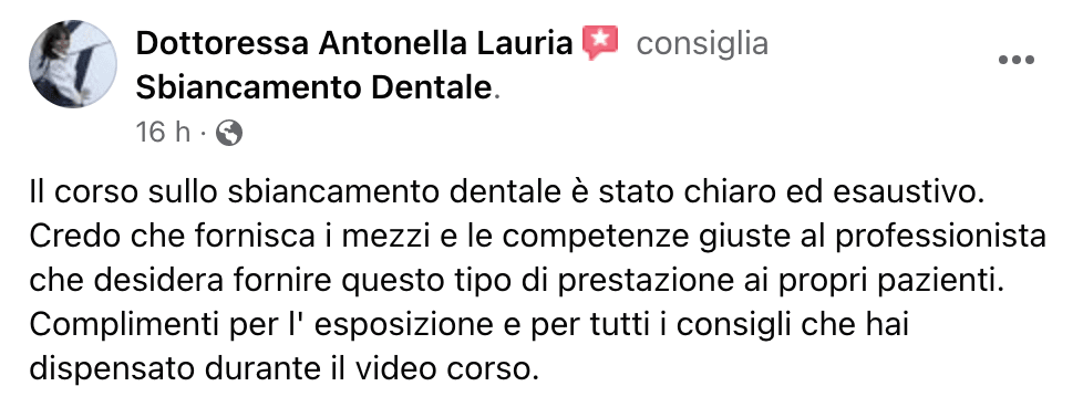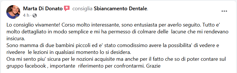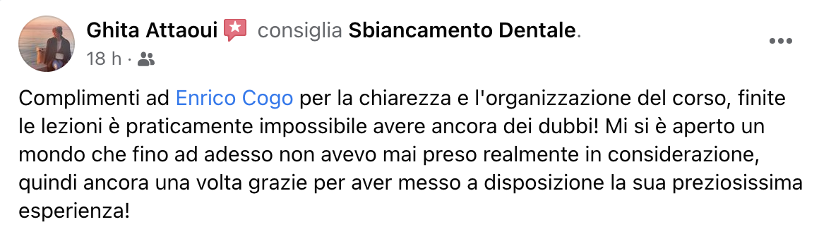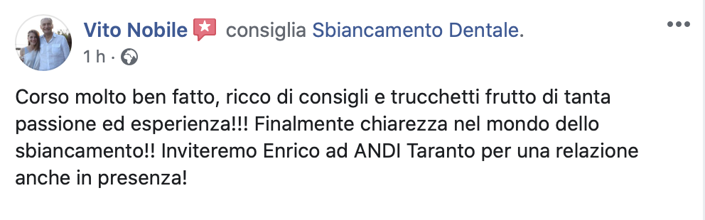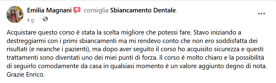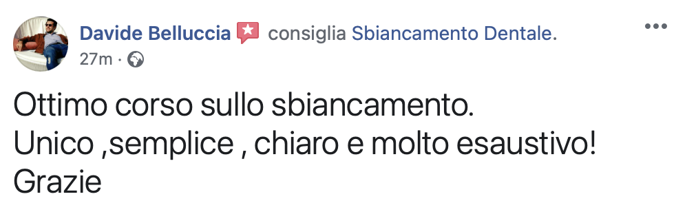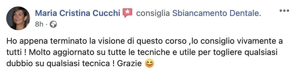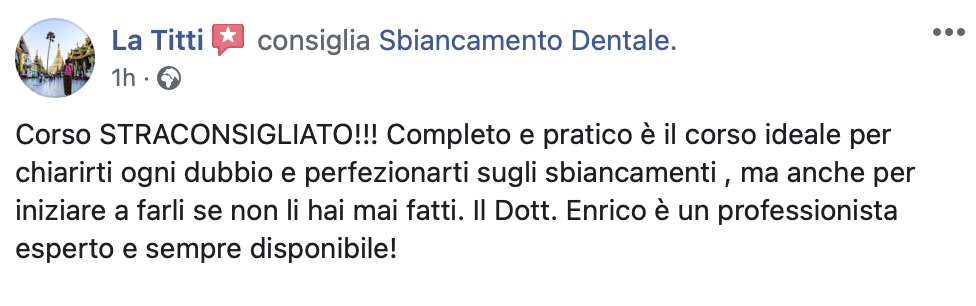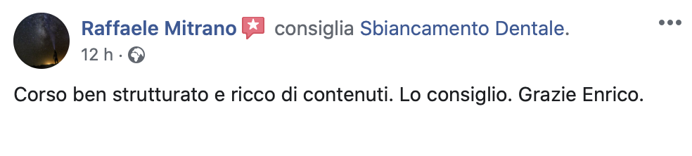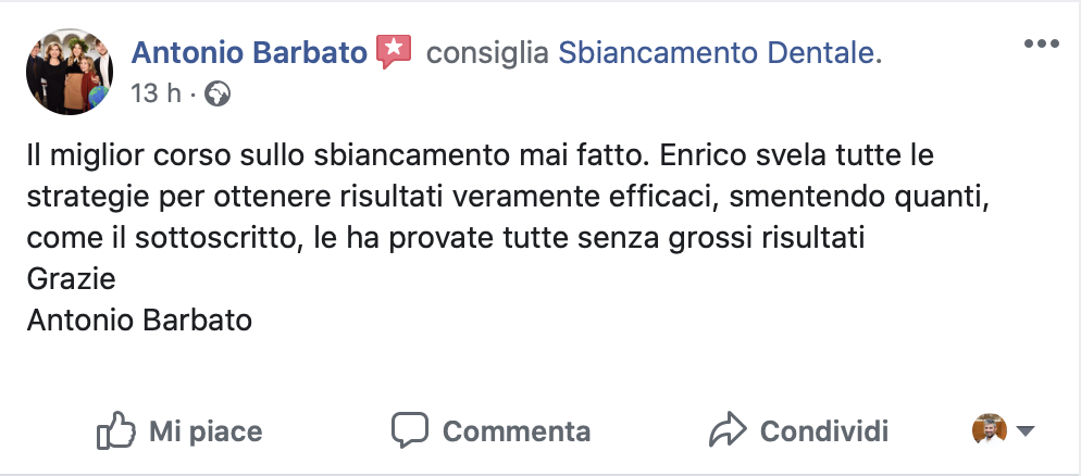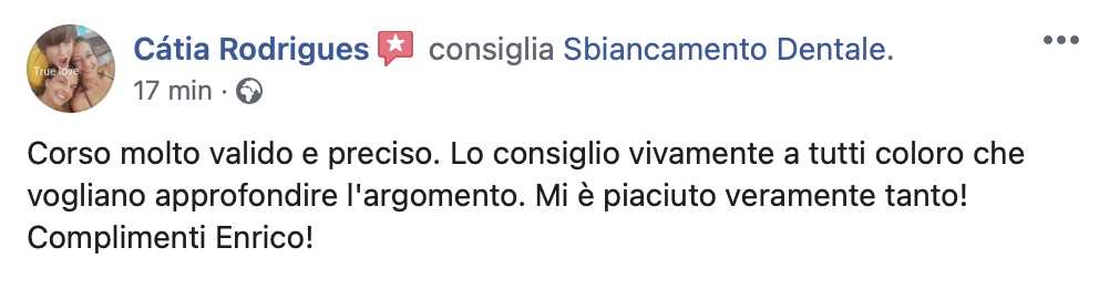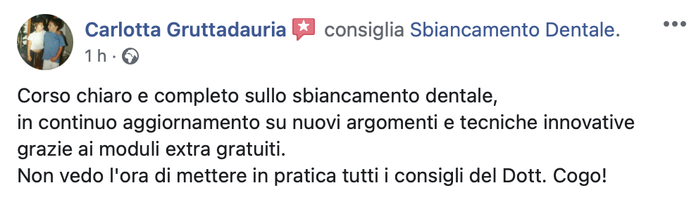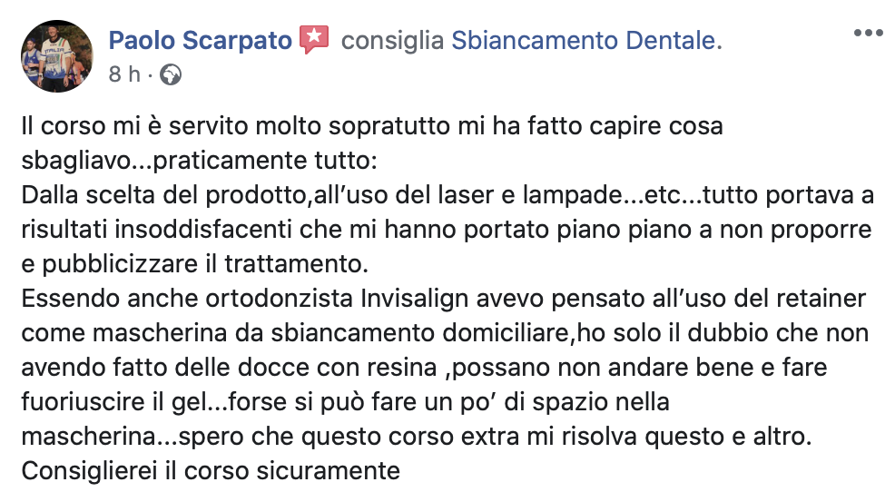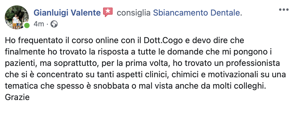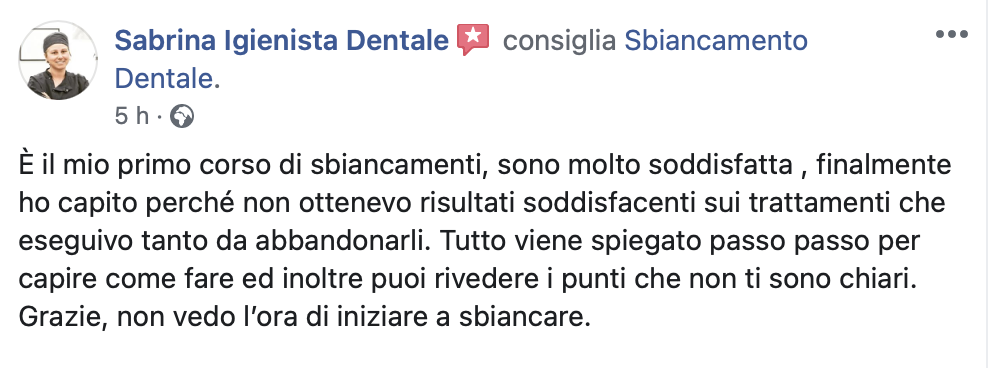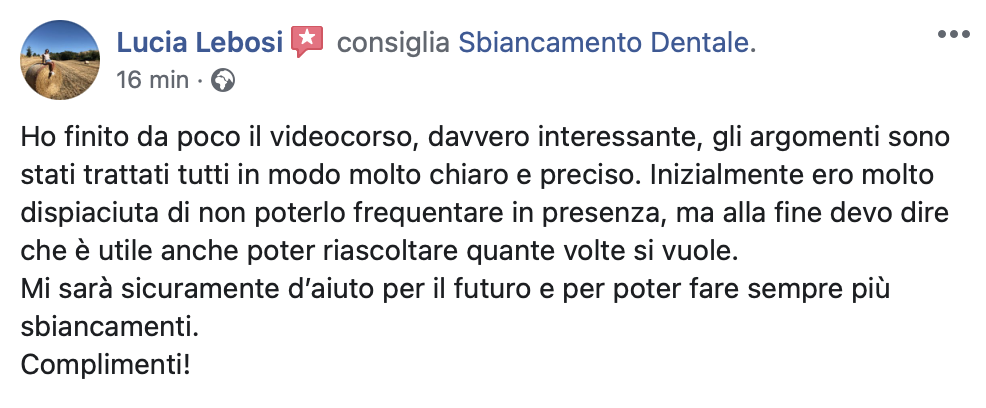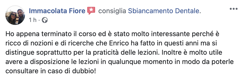 Ecco cosa dicono le persone di me e del mio videocorso online sullo sbiancamento dentale.