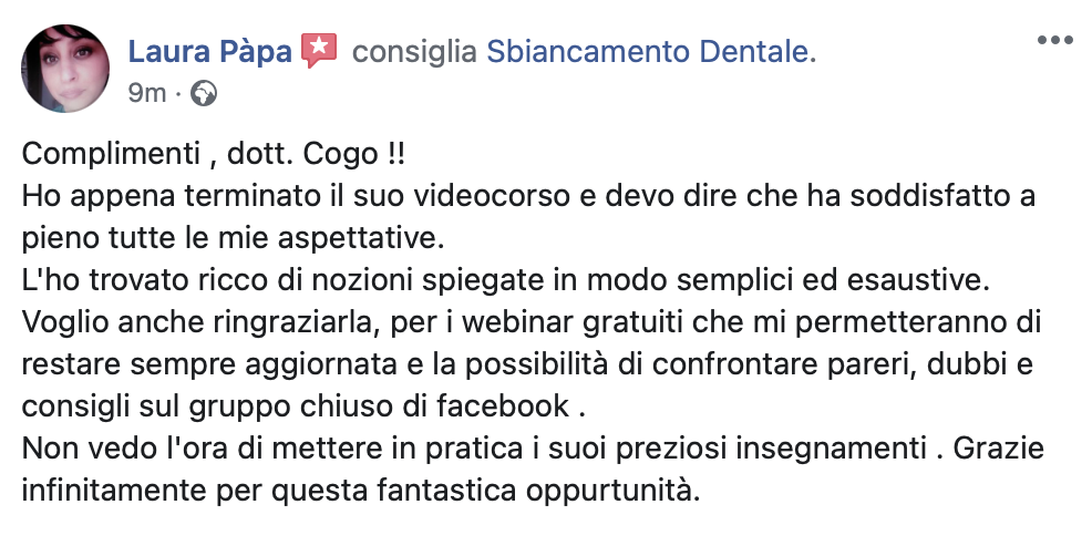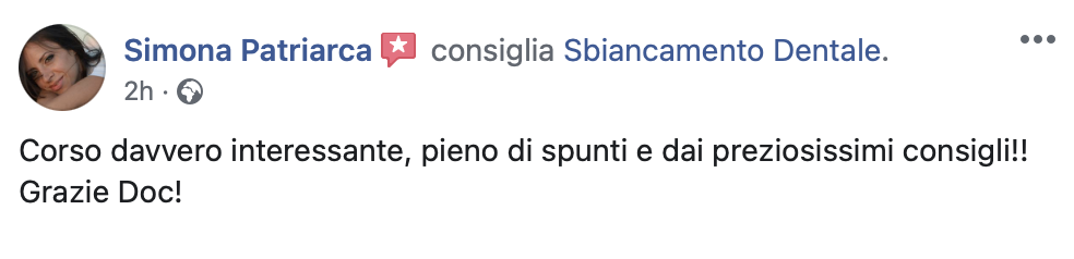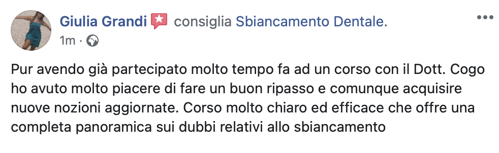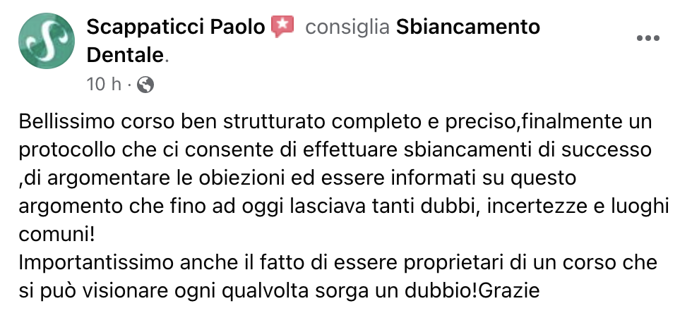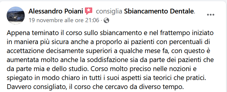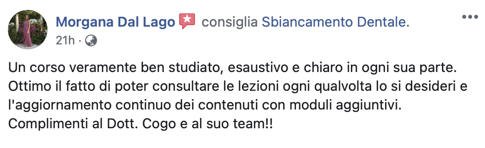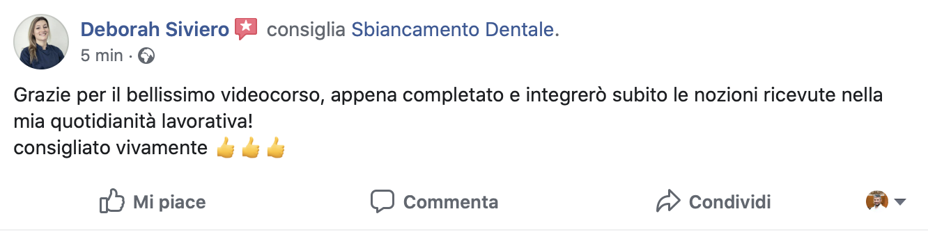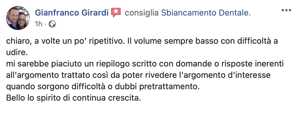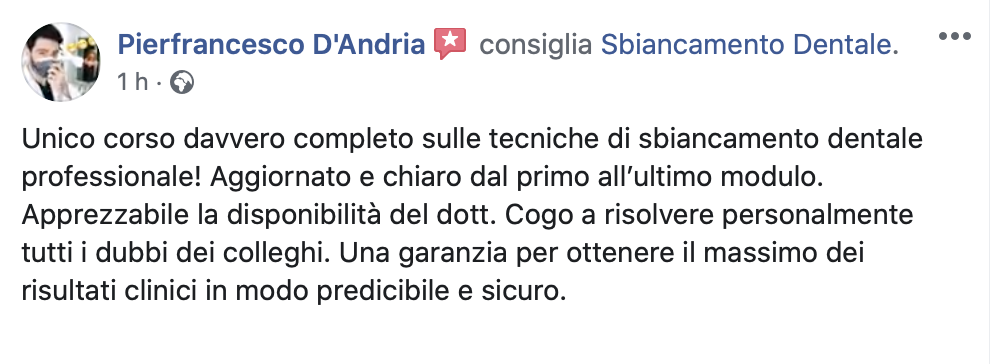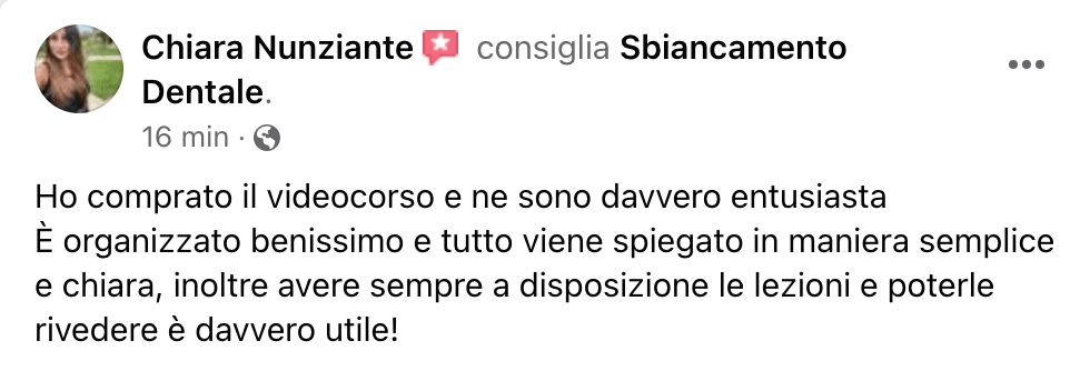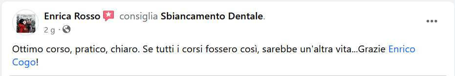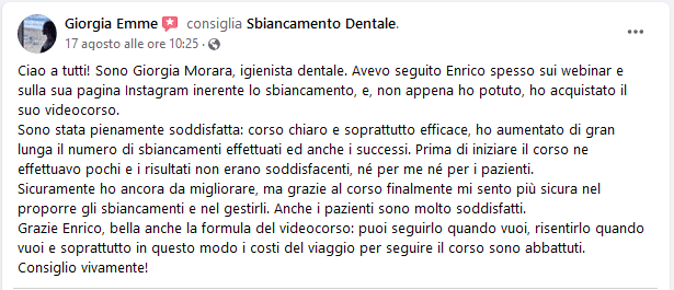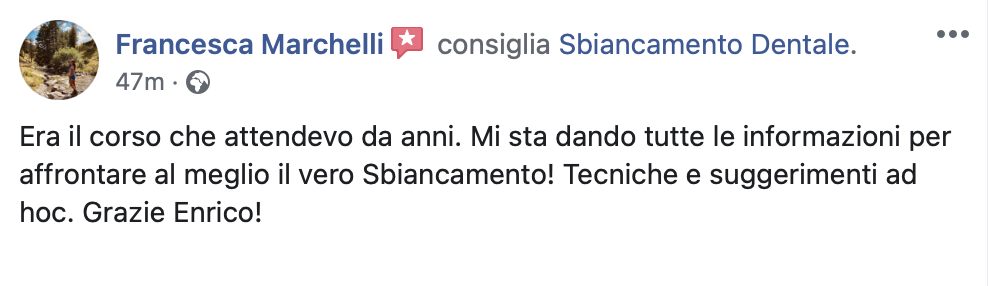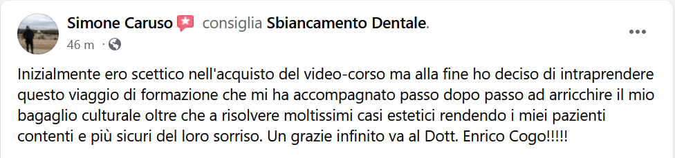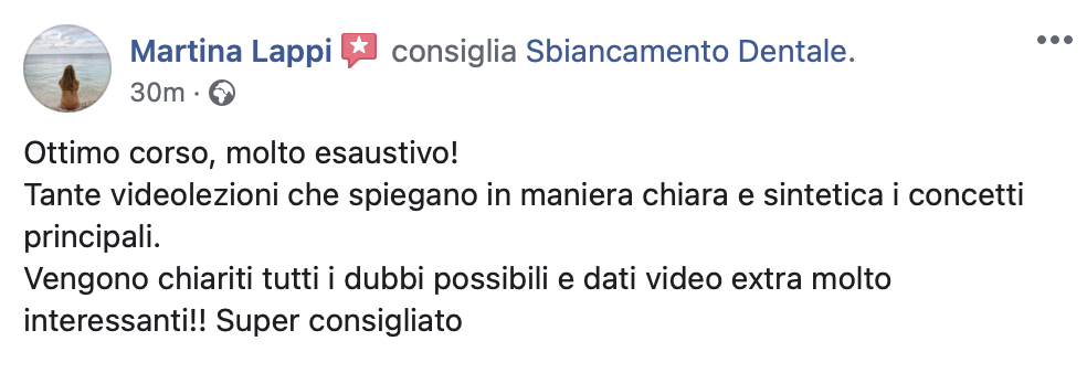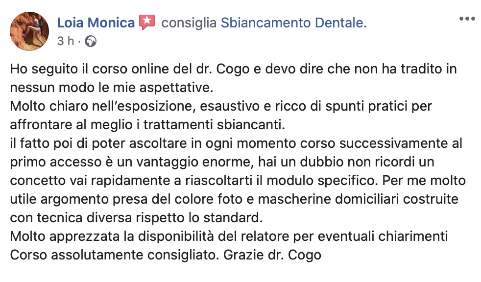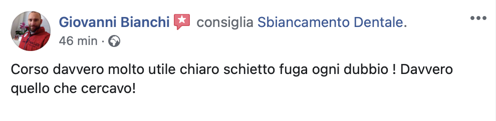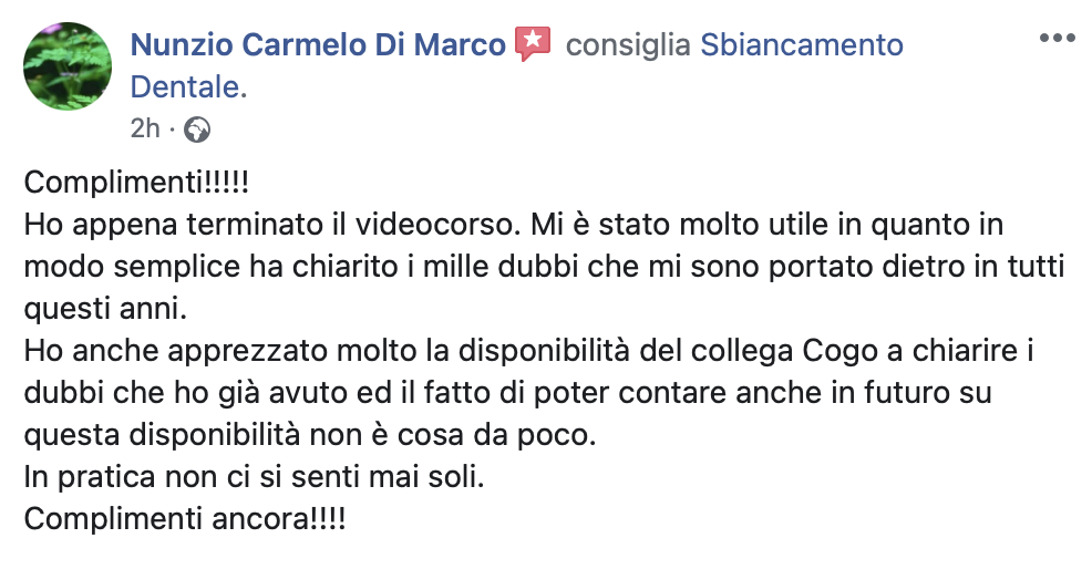 Ecco cosa dicono le persone di me e del mio videocorso online sullo sbiancamento dentale.