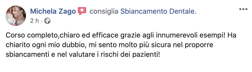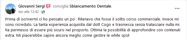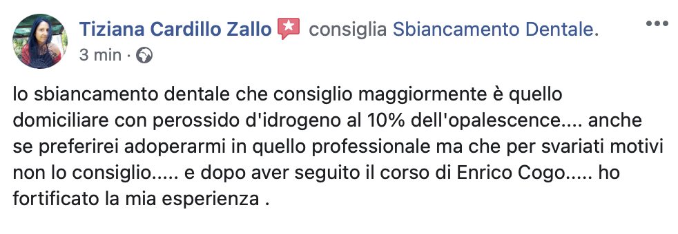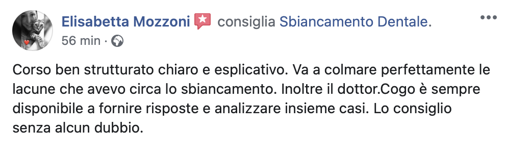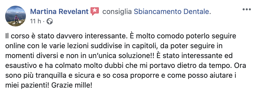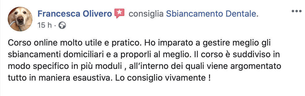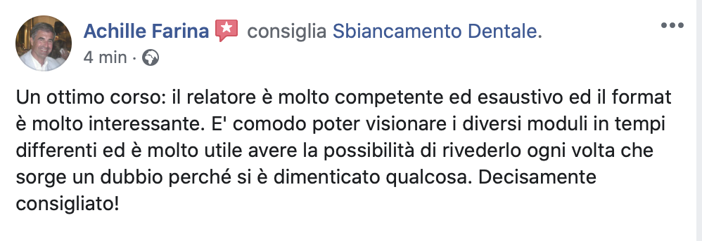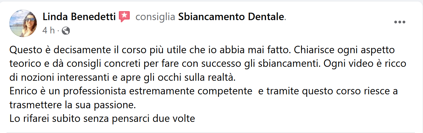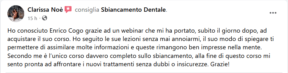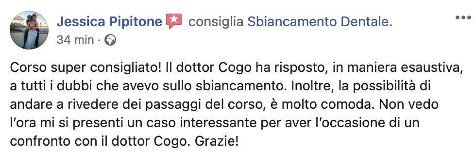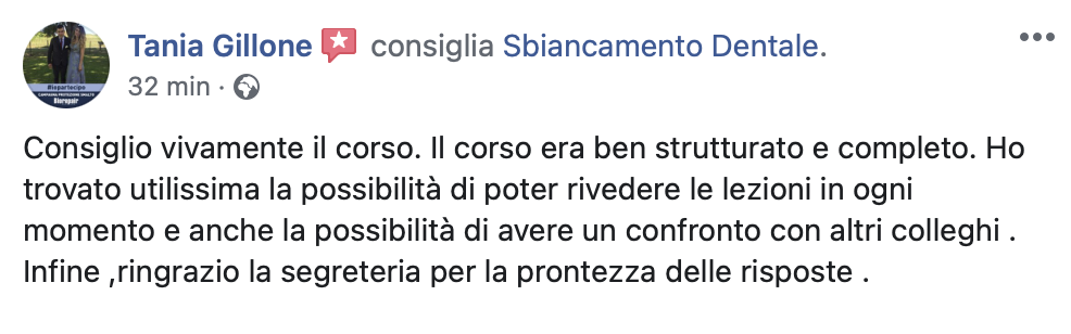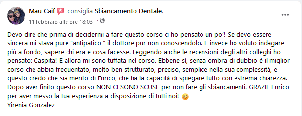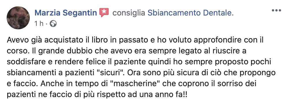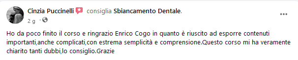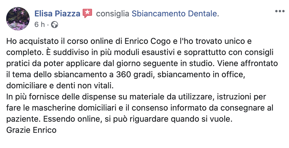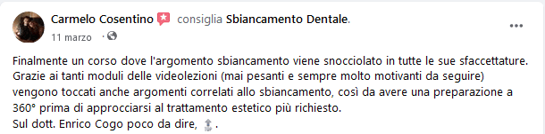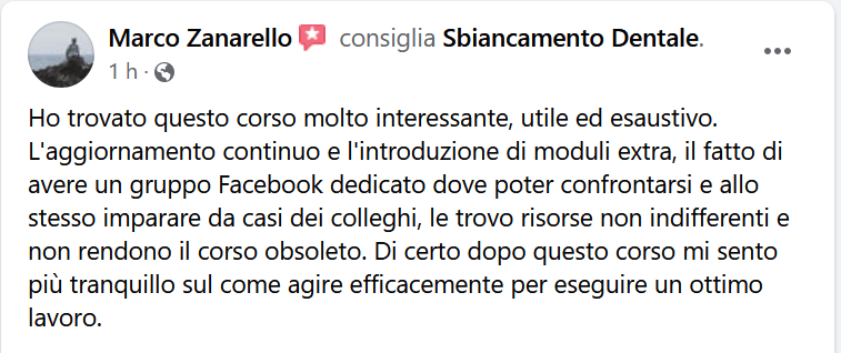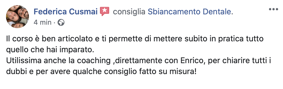 Ecco cosa dicono le persone di me e del mio videocorso online sullo sbiancamento dentale.