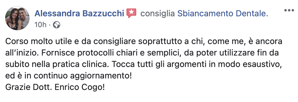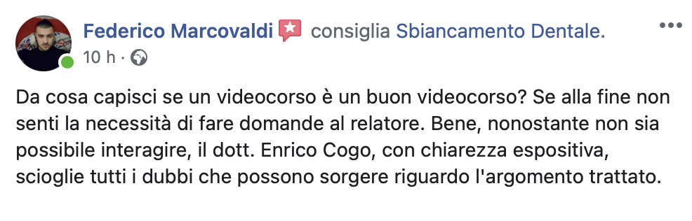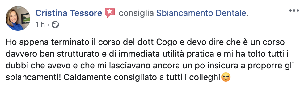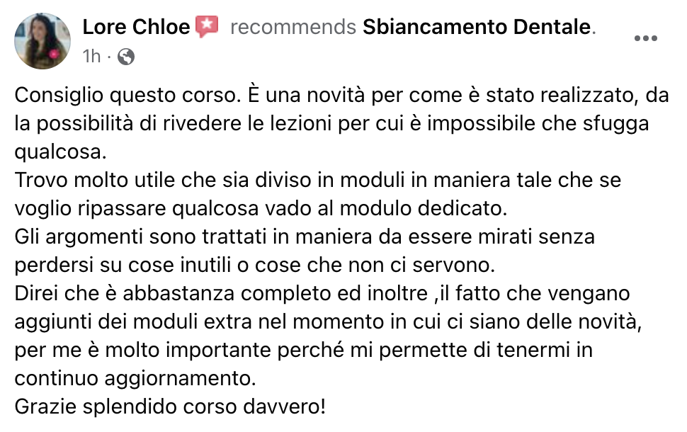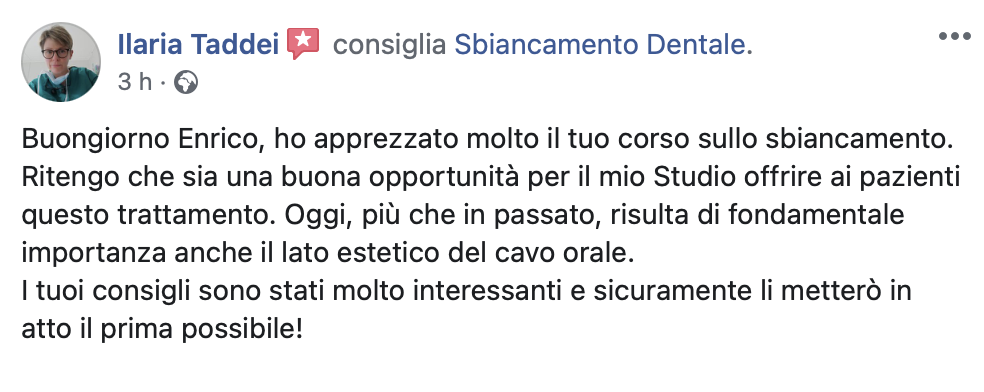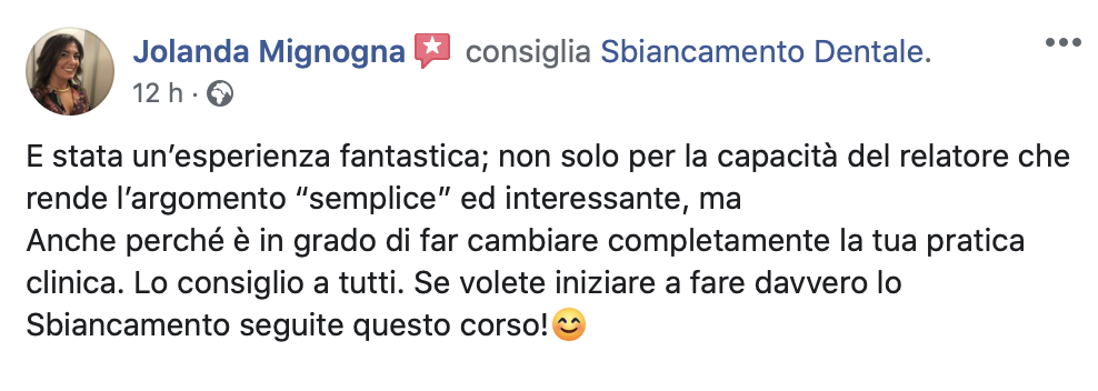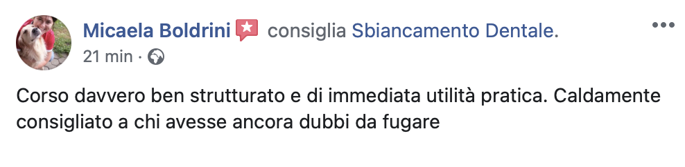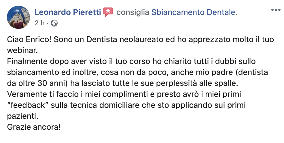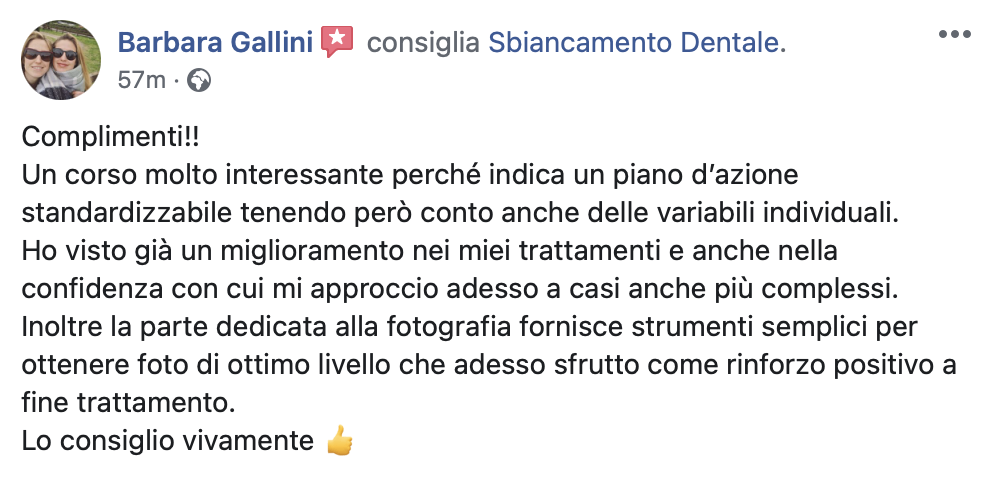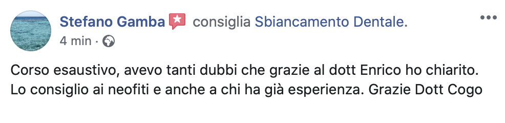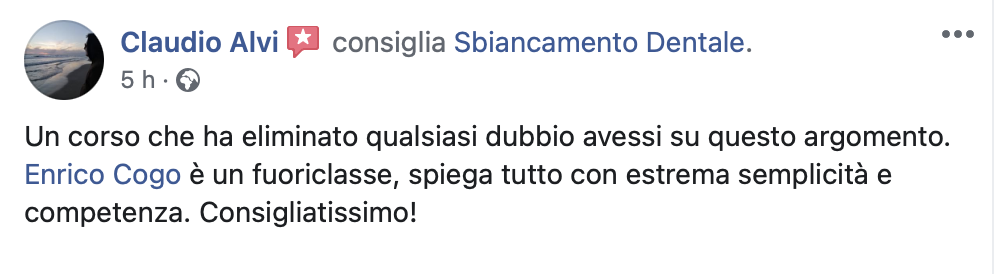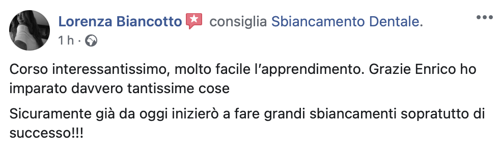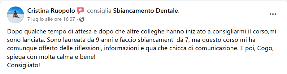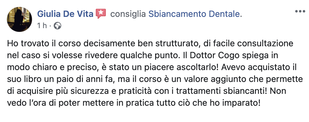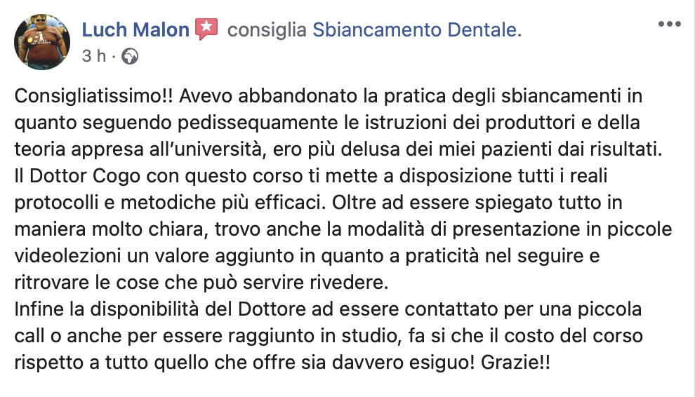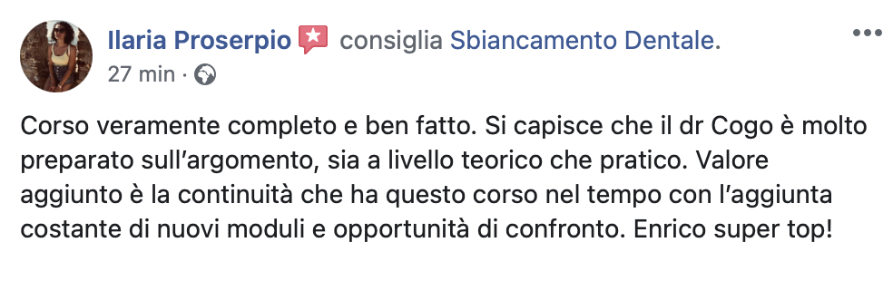 Ecco cosa dicono le persone di me e del mio videocorso online sullo sbiancamento dentale.
