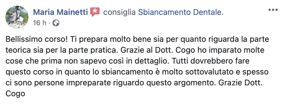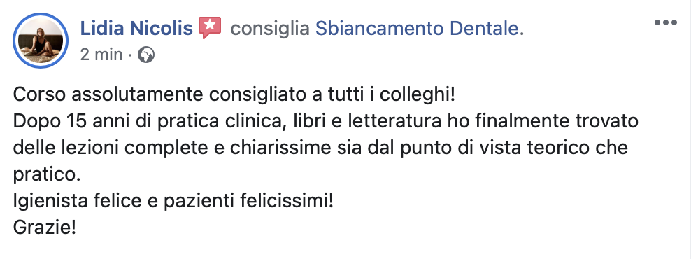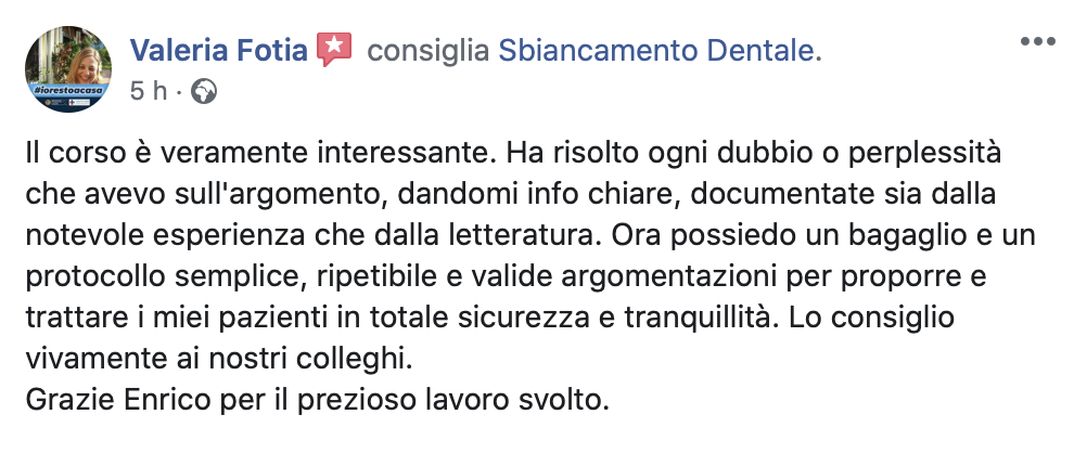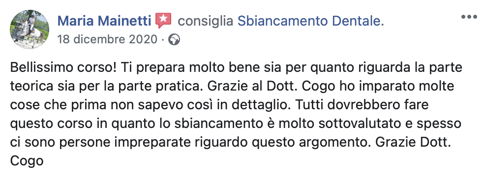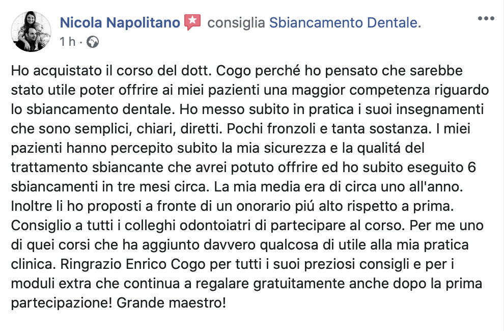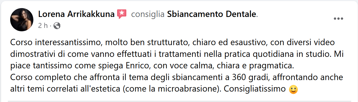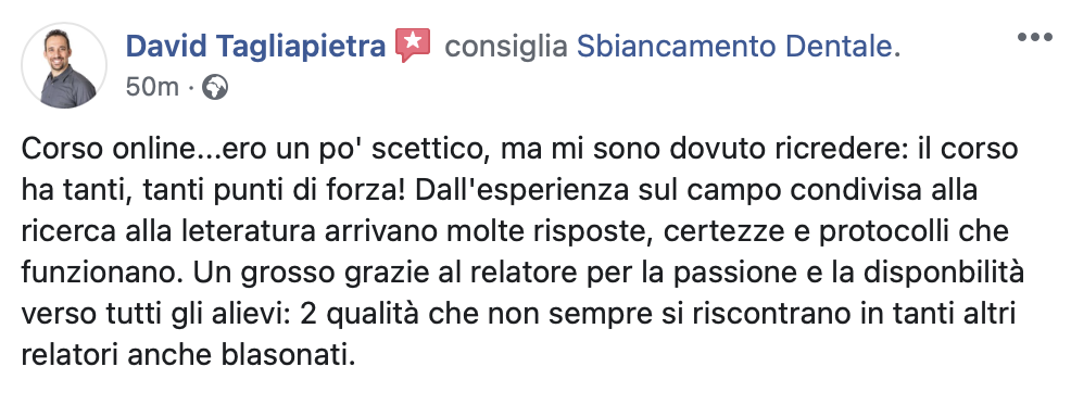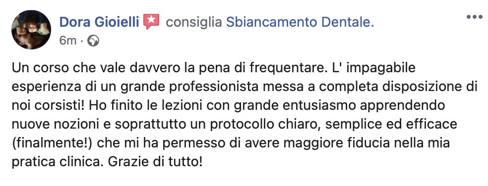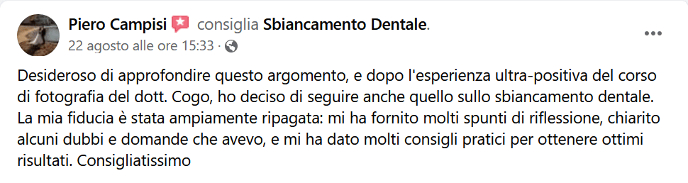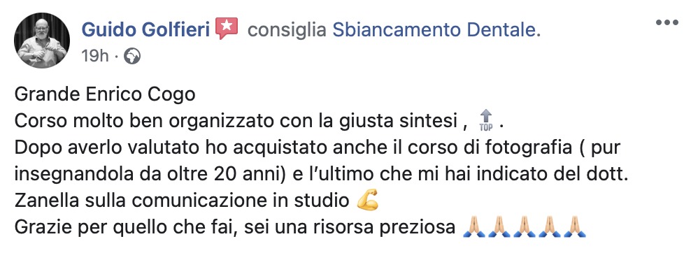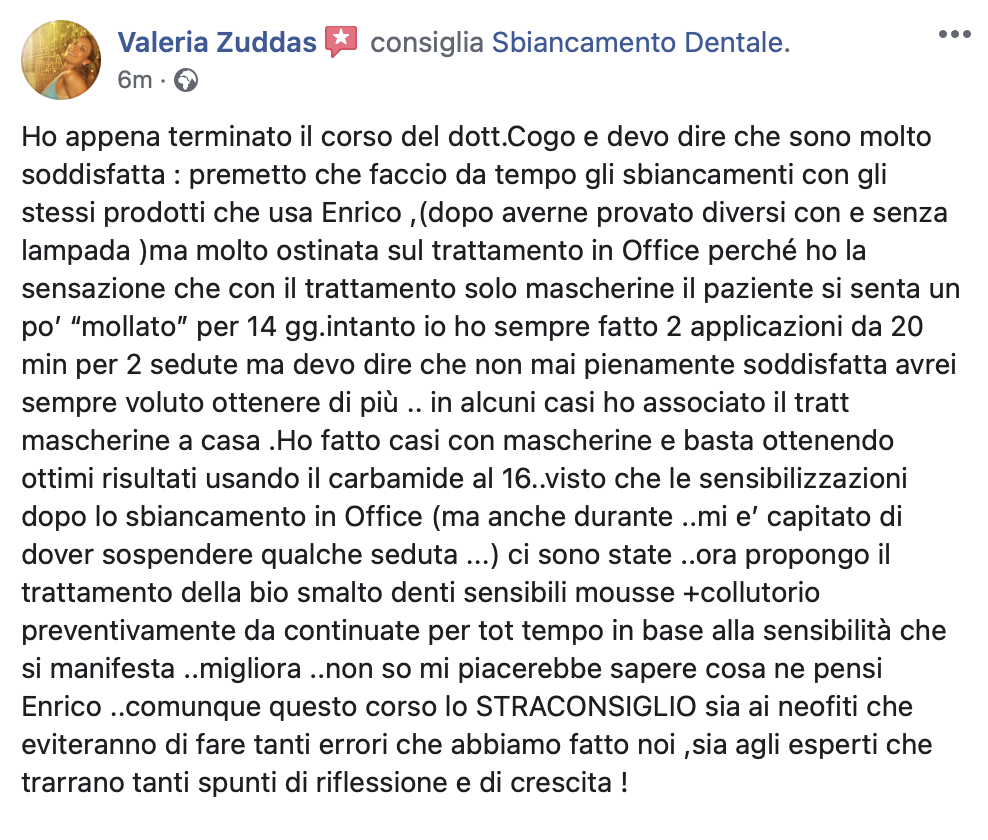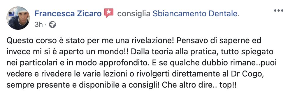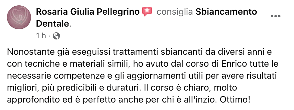 Ecco cosa dicono le persone di me e del mio videocorso online sullo sbiancamento dentale.