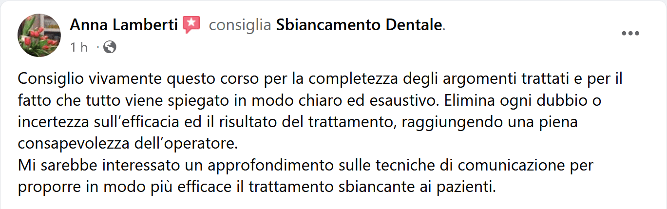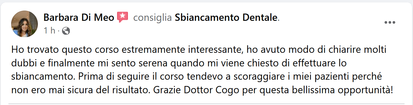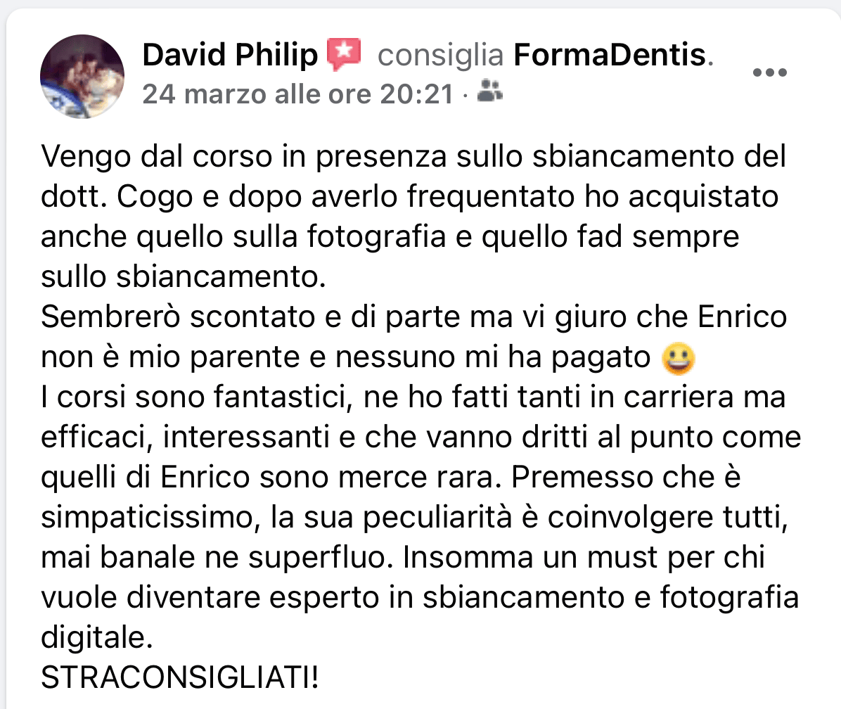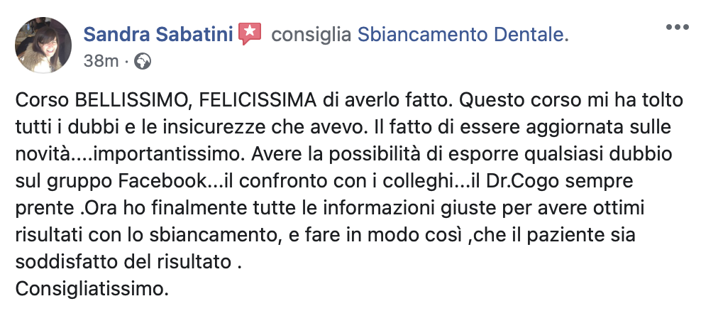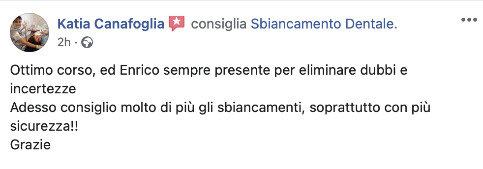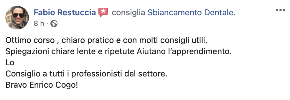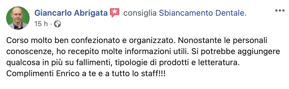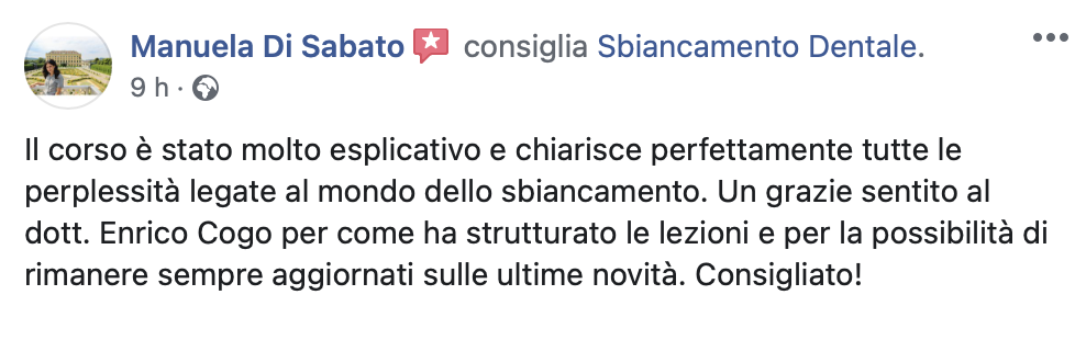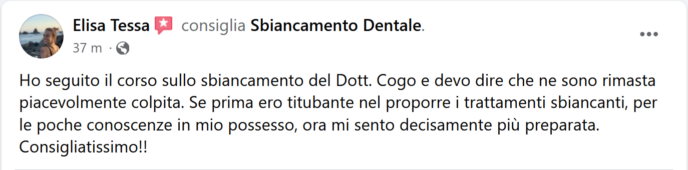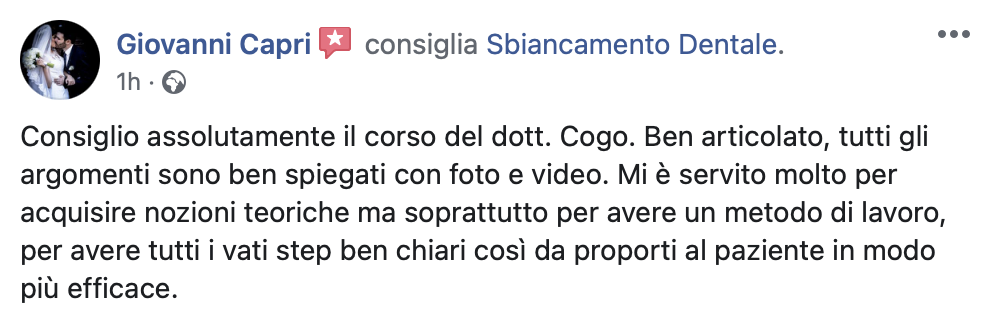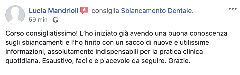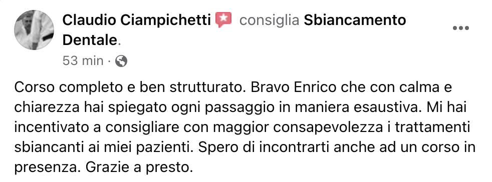 Ecco cosa dicono le persone di me e del mio videocorso online sullo sbiancamento dentale.