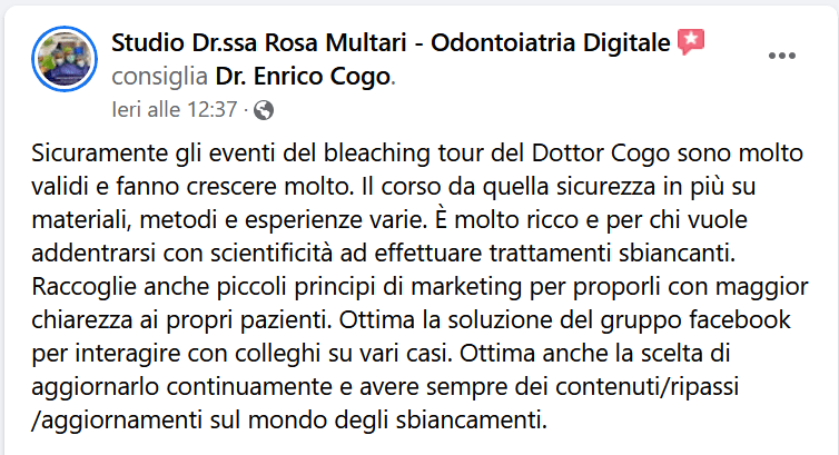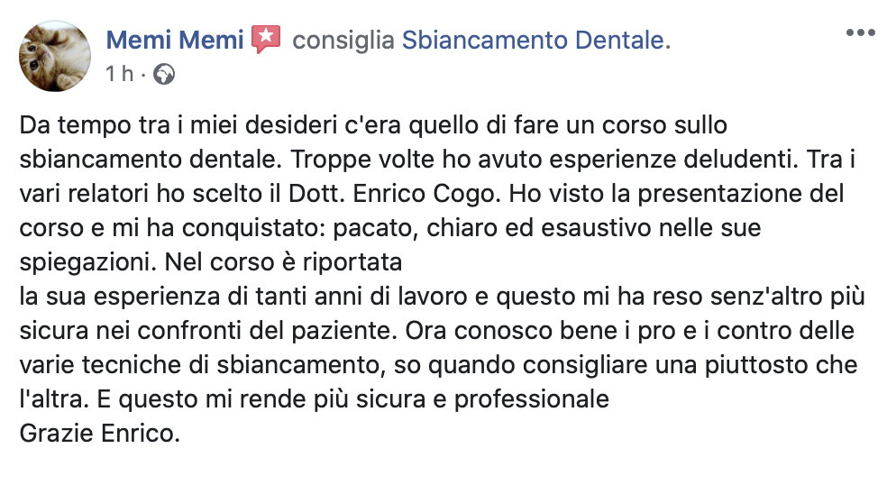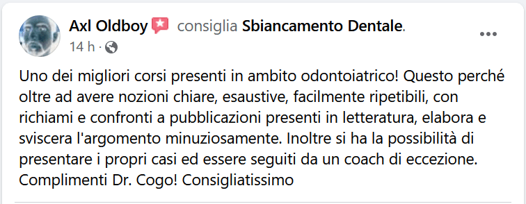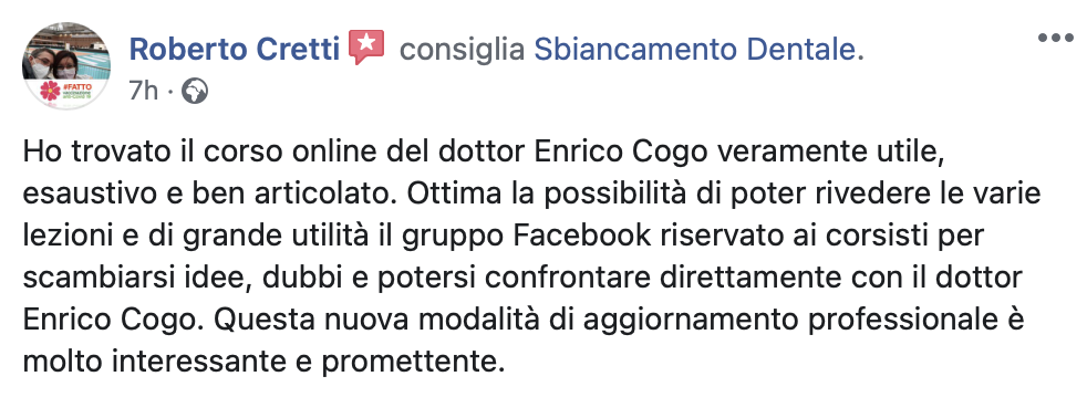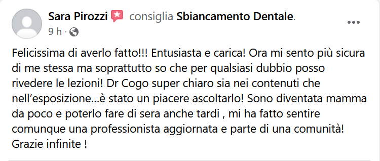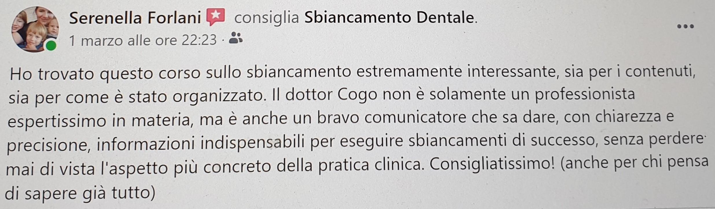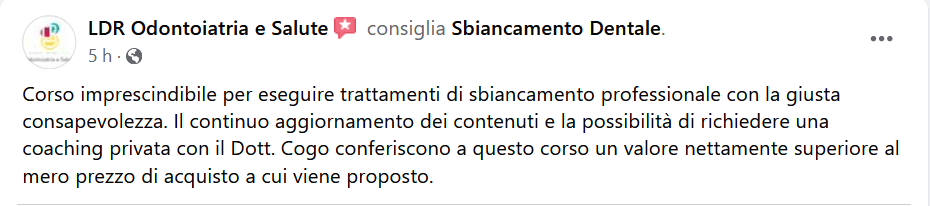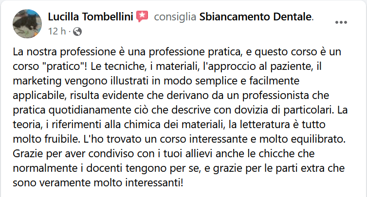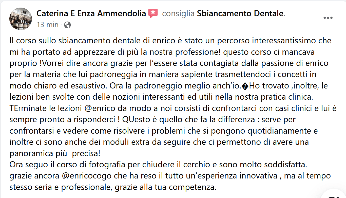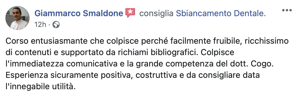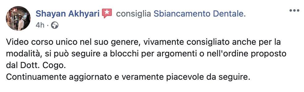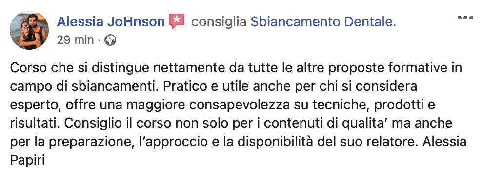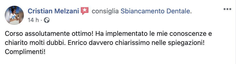 Ecco cosa dicono le persone di me e del mio videocorso online sullo sbiancamento dentale.